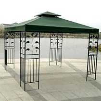 This is an intelligently designed gazebo replacement canopy top cover for most standard 10' x 10' two-tiered gazebos. This 10' x 10' durable polyvinyl top cover has a two-tier ventilated top construction. The top tier measures 36" x 36". The opening of the bottom tier is 25" x 25". Between the top tier and bottom tier is a functional mosquito netting that allows the canopy to expand upwards and to allow wind gusts. This expansion capability allows this canopy to fit two-tiered 10' x 10' (120" x 120") gazebos.